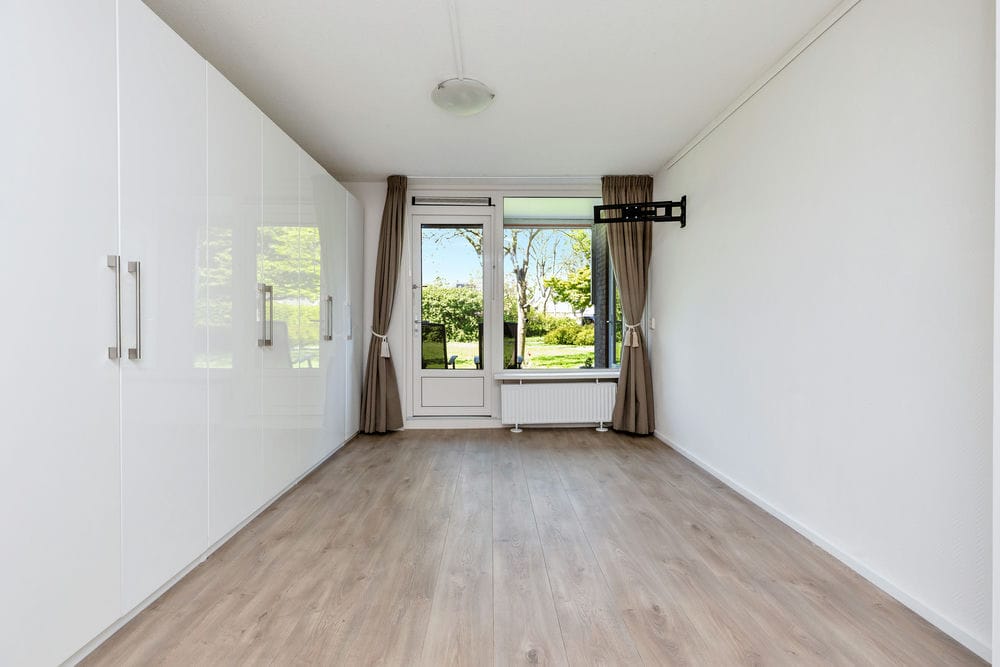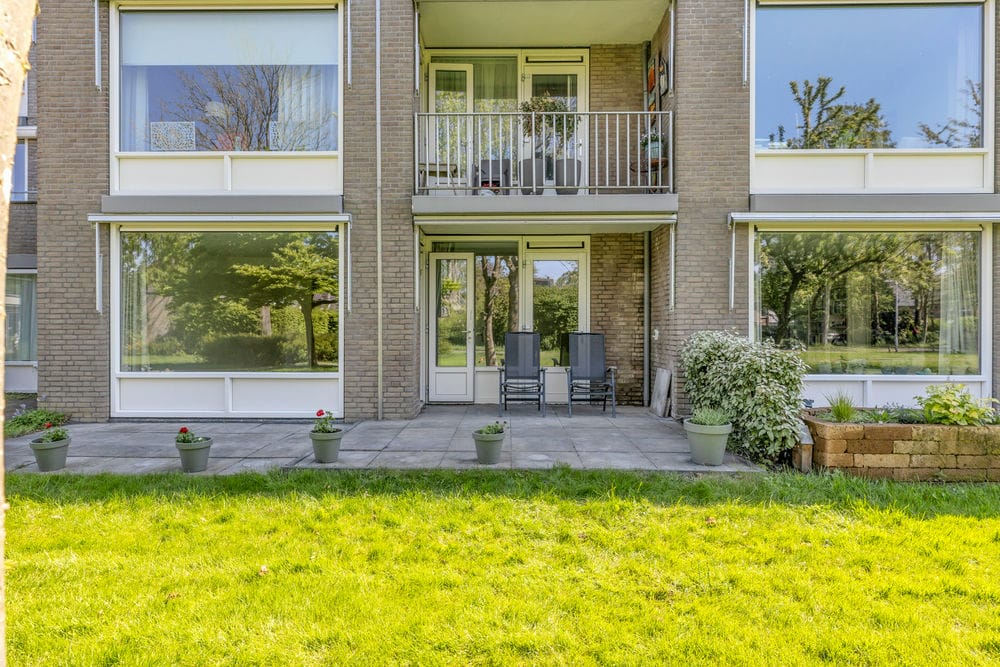 De benedenwoning is volledig zelfstandig met een woonkamer, keuken, complete badkamer, inpandige berging/wasruimte en ruime slaapkamer. De woning is modern en instapklaar, goed onderhouden en heeft grote raampartijen die zorgen voor veel natuurlijk licht. Het privé terras, bereikbaar vanuit zowel de woonkamer als slaapkamer, biedt een fraai uitzicht op de binnentuin en is deels overdekt voor een beschutte zithoek.