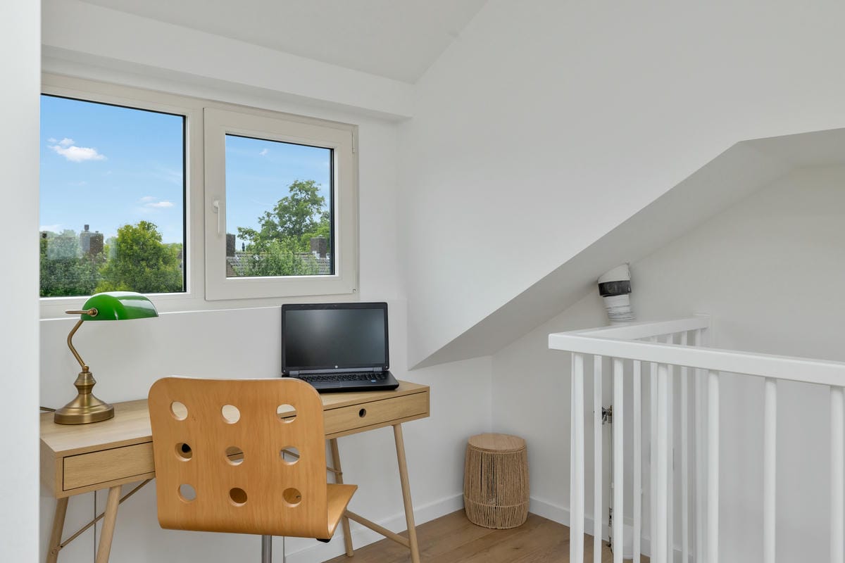 Zo is er een dakopbouw met verhoogde nok en vaste trap gerealiseerd, waardoor de tweede verdieping nu een volwaardige, lichte slaapkamer herbergt. De woning is volledig voorzien van kunststof kozijnen met HR++ glas, heeft een Intergas CV-ketel uit 2025 (eigendom), nieuwe dakgoten en is volledig geïsoleerd (energielabel C). Ook aan comfort en sfeer is gedacht: strak gestuukte muren, brede laminaatdelen, moderne zwarte deuren en schakelmateriaal, sierradiatoren én een luxe afwerking in badkamer en keuken.