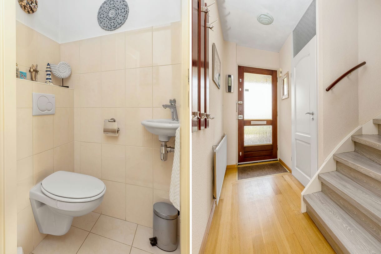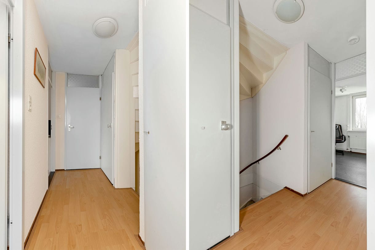 - Hoekwoning heeft t.o.v. een tussenwoning aan de voorzijde extra ruimte in zowel de woonkamer als de badkamer én slaapkamer op de 1e verdieping;