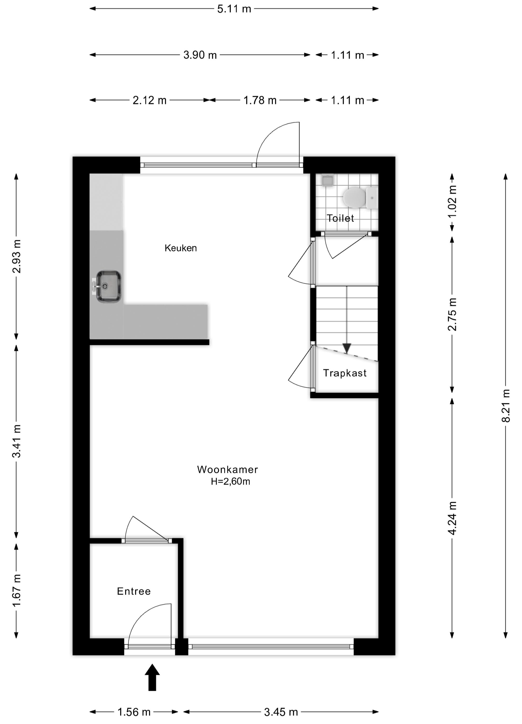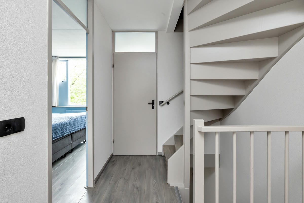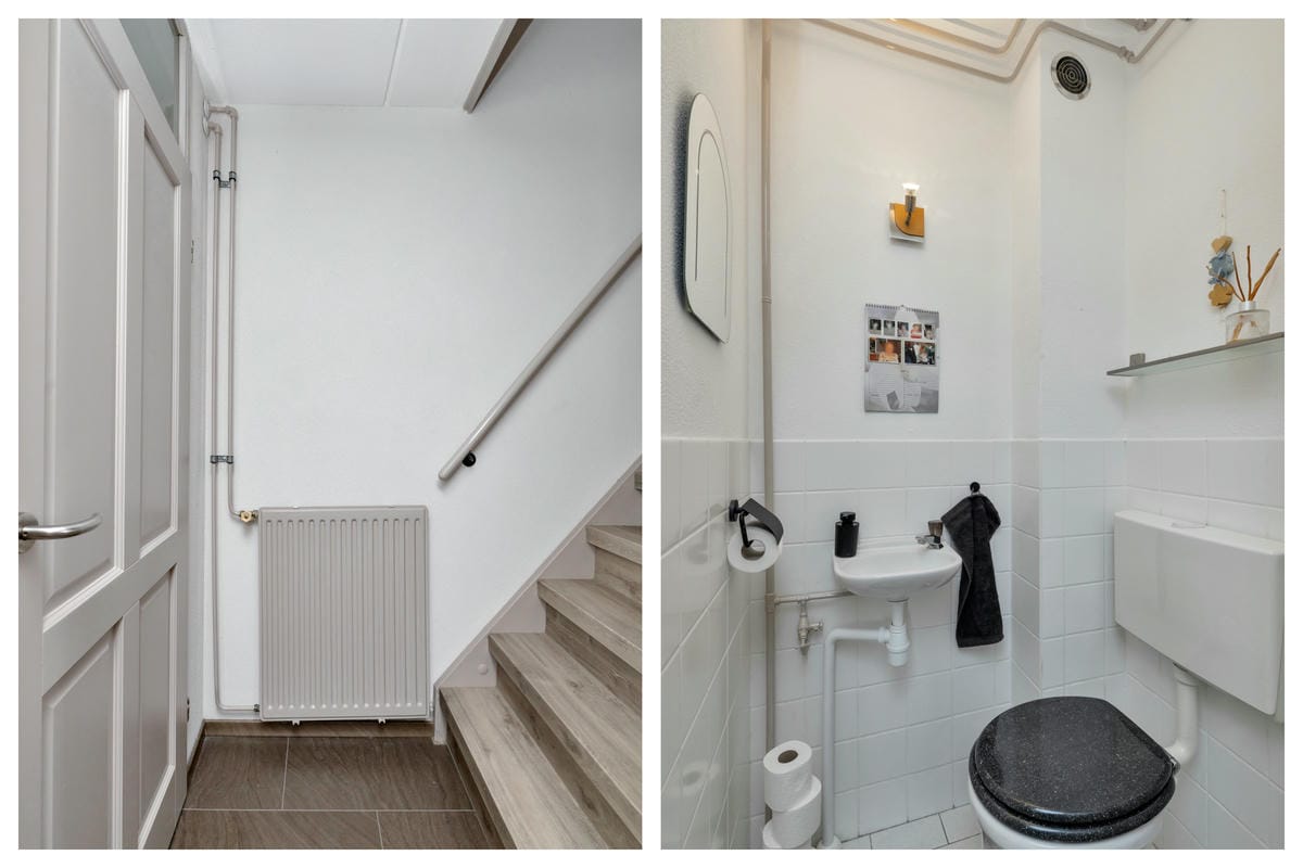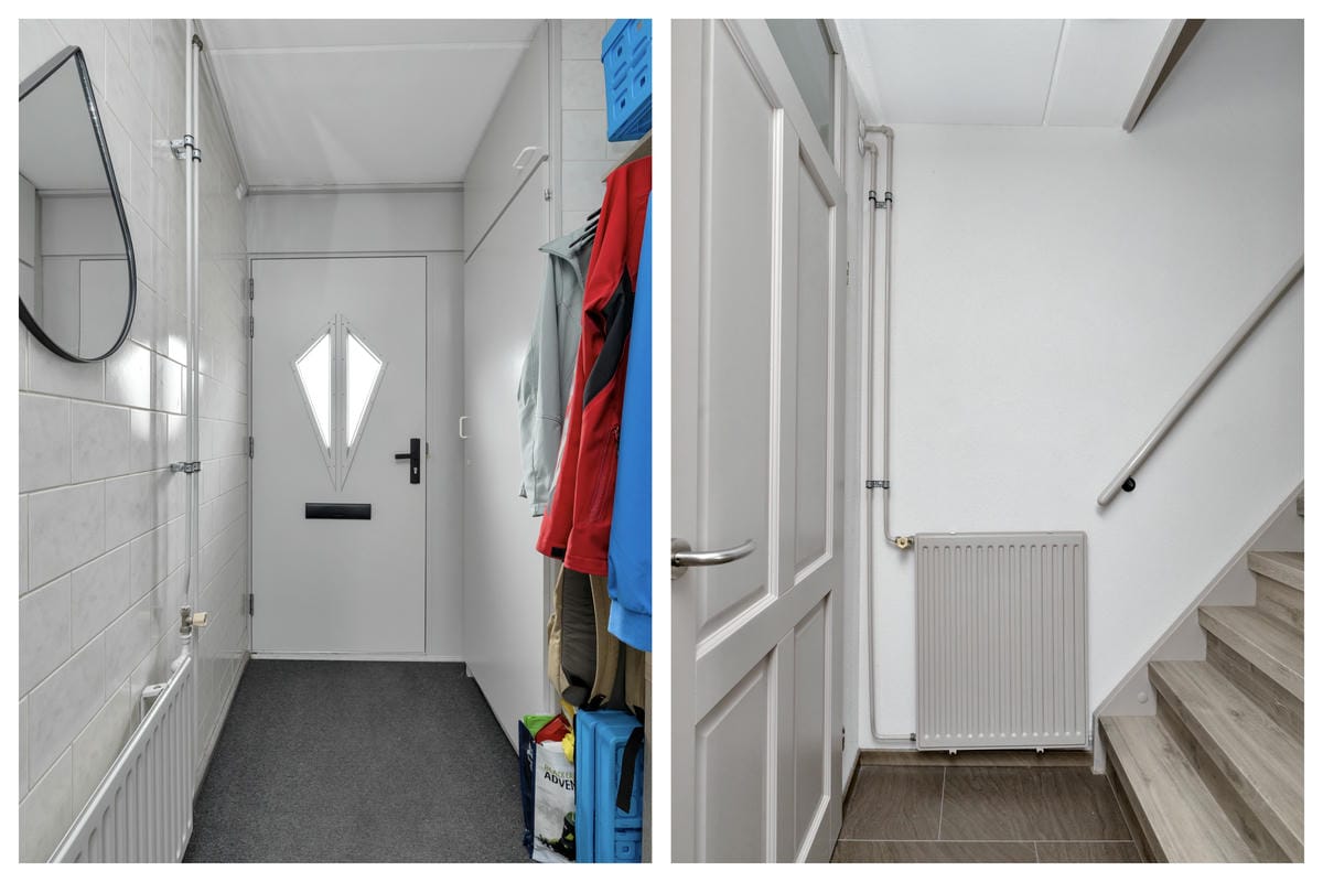 Begane grond: Entree met garderobe en vernieuwde meterkast (2017). Lichte woonkamer aan de voorzijde met trapkast, laminaattegelvloer en radiatoren voorzien van ombouw. De open keuken (2017) is gesitueerd aan de tuinzijde en uitgerust met een inductiekookplaat, nieuwe vaatwasser (2025), Whirlpool afzuigkap met koolstoffilters, combimagnetron en koel-vriescombinatie.