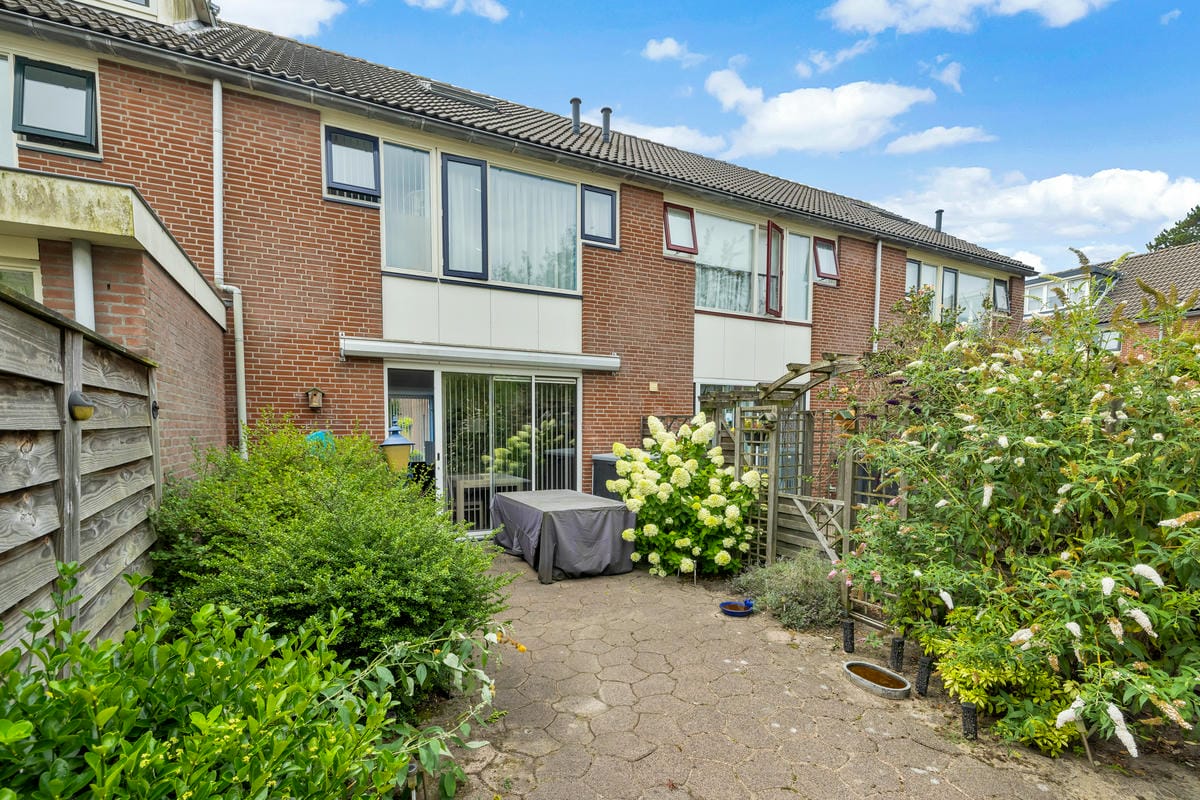 Buitenruimte: Achtertuin met vrijstaande stenen berging, waarvan het dak in 2024 is vernieuwd. De tuin biedt voldoende ruimte voor een loungehoek en eettafel, en heeft een achterom.