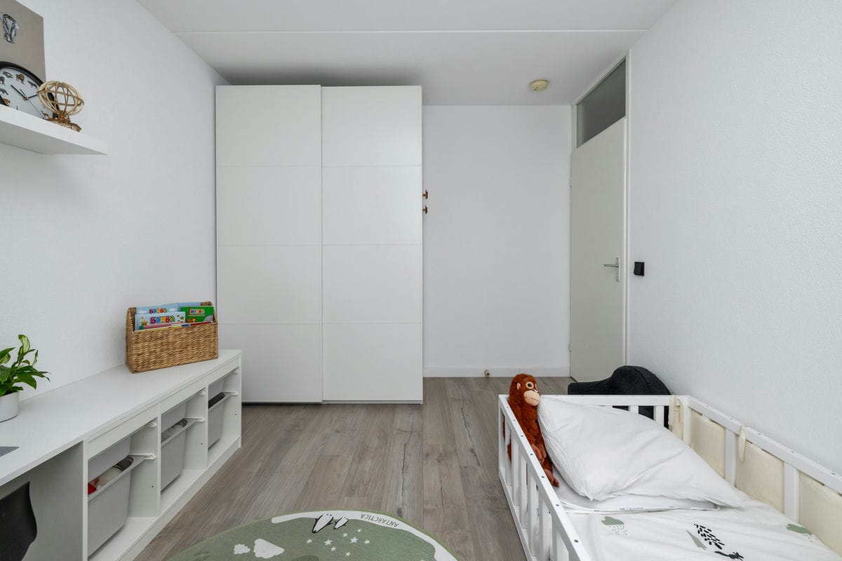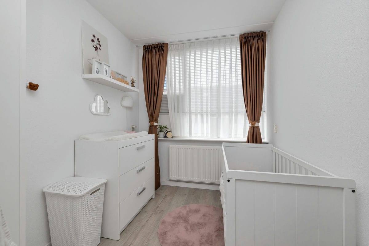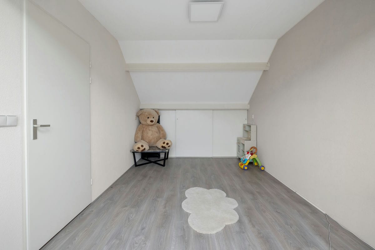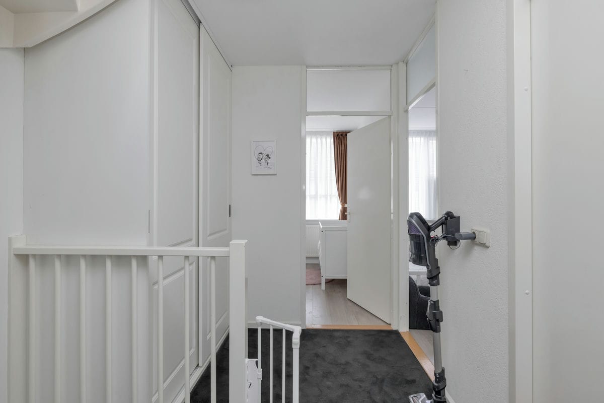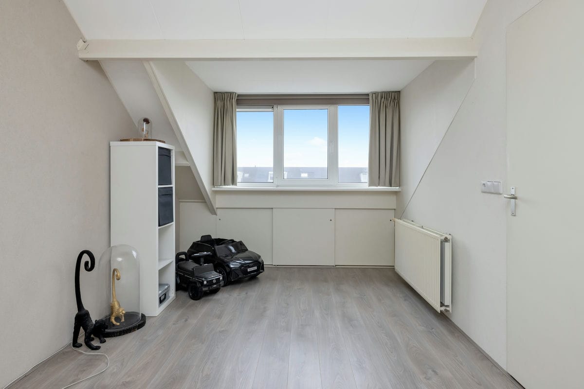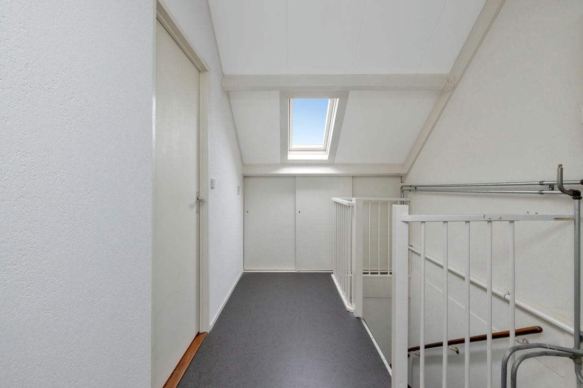 Op de eerste verdieping vindt u twee ruime slaapkamers en een kleinere slaap- of werkkamer. De badkamer is netjes afgewerkt en voorzien van een douche, een toilet en een wastafelmeubel. Via een vaste trap bereikt u de tweede verdieping, waar een royale vierde slaapkamer met kunststof dakkapel te vinden is. Op deze verdieping zijn ook de cv-installatie, de wasmachineopstelling en extra bergruimte achter de knieschotten aanwezig.