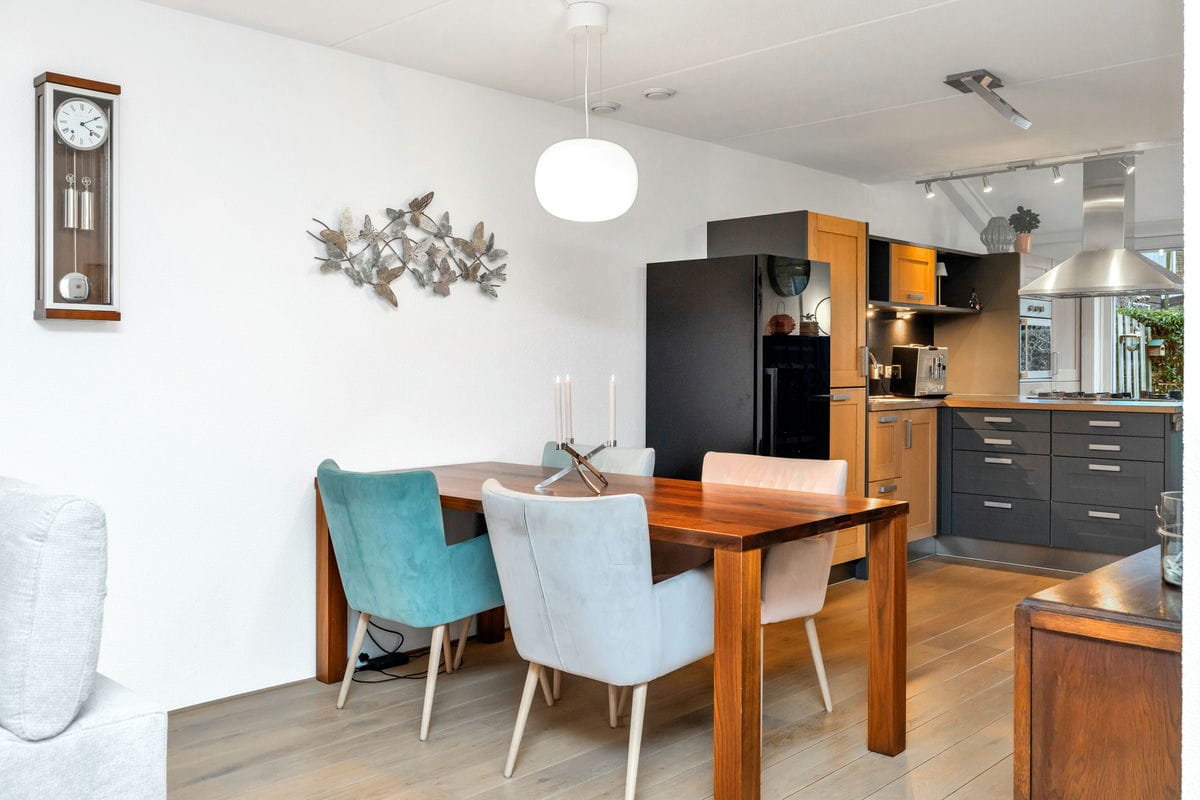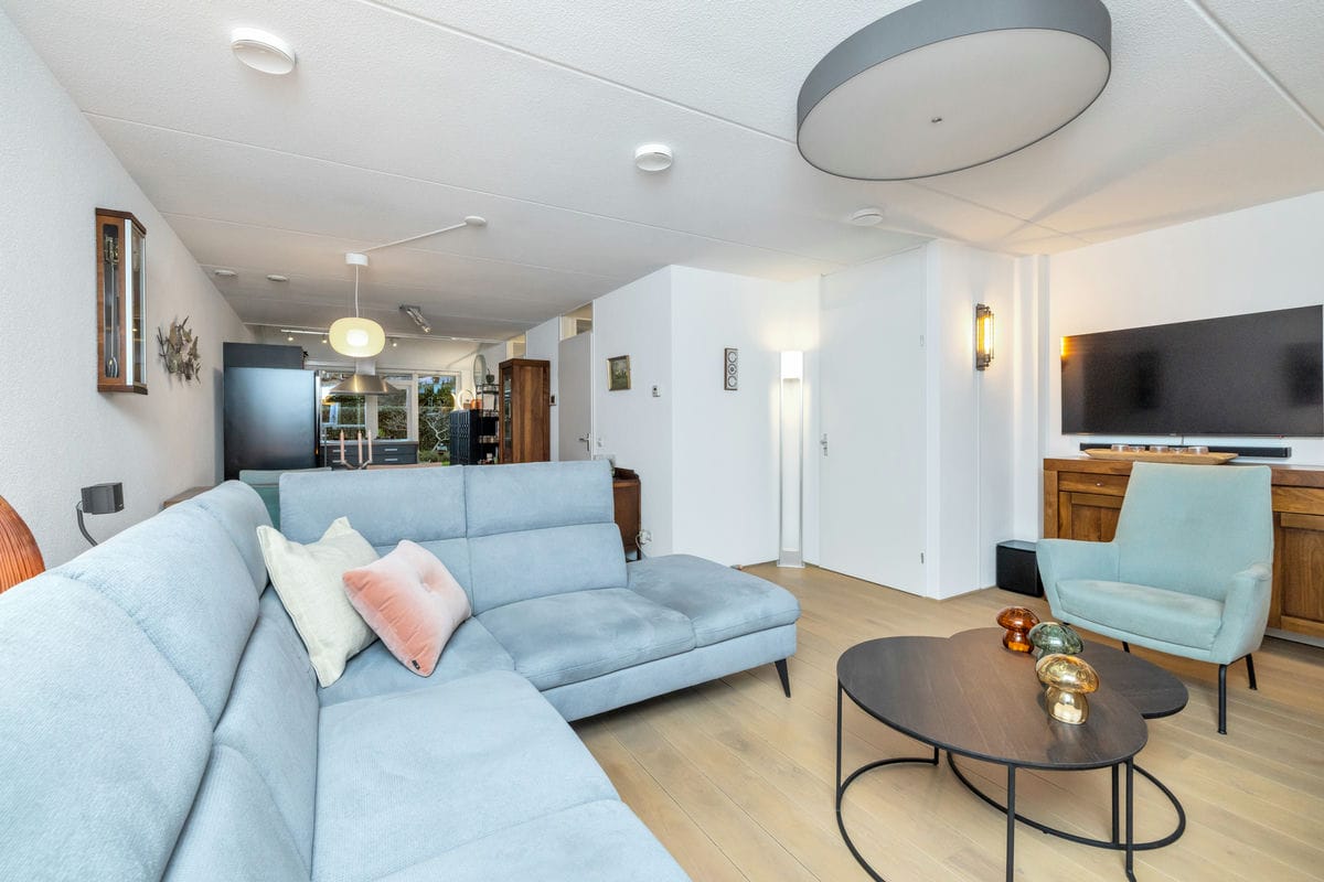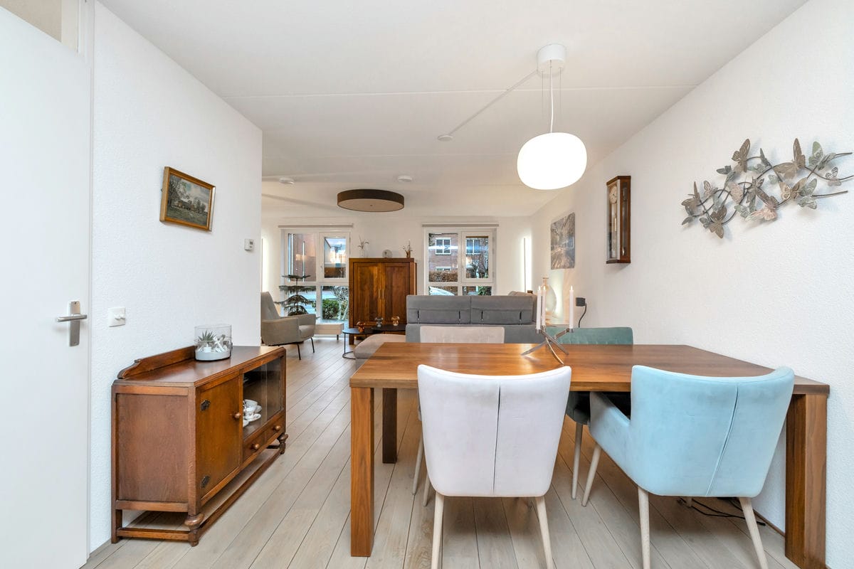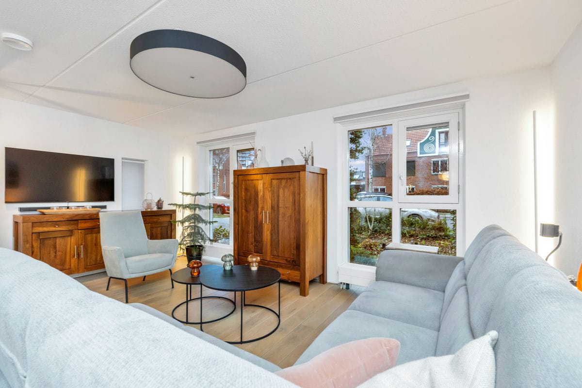 Bij binnenkomst via de zijentree betreedt u de hal, waar zich een keurig toilet, een garderobe en de meterkast bevinden. De woonkamer, gelegen aan de voorzijde, is licht en sfeervol dankzij de grote raampartijen. De mooie parketvloer in de woonkamer en keuken is in 2023 opnieuw behandeld, wat bijdraagt aan de verzorgde uitstraling van de woning. Bovendien is de gehele woning in 2023 opnieuw gewit en ook het buitenschilderwerk is datzelfde jaar uitgevoerd.