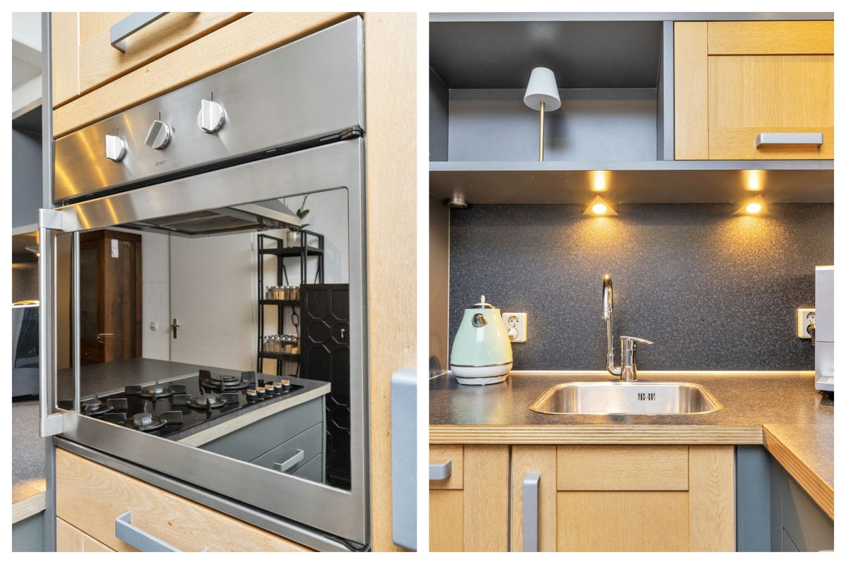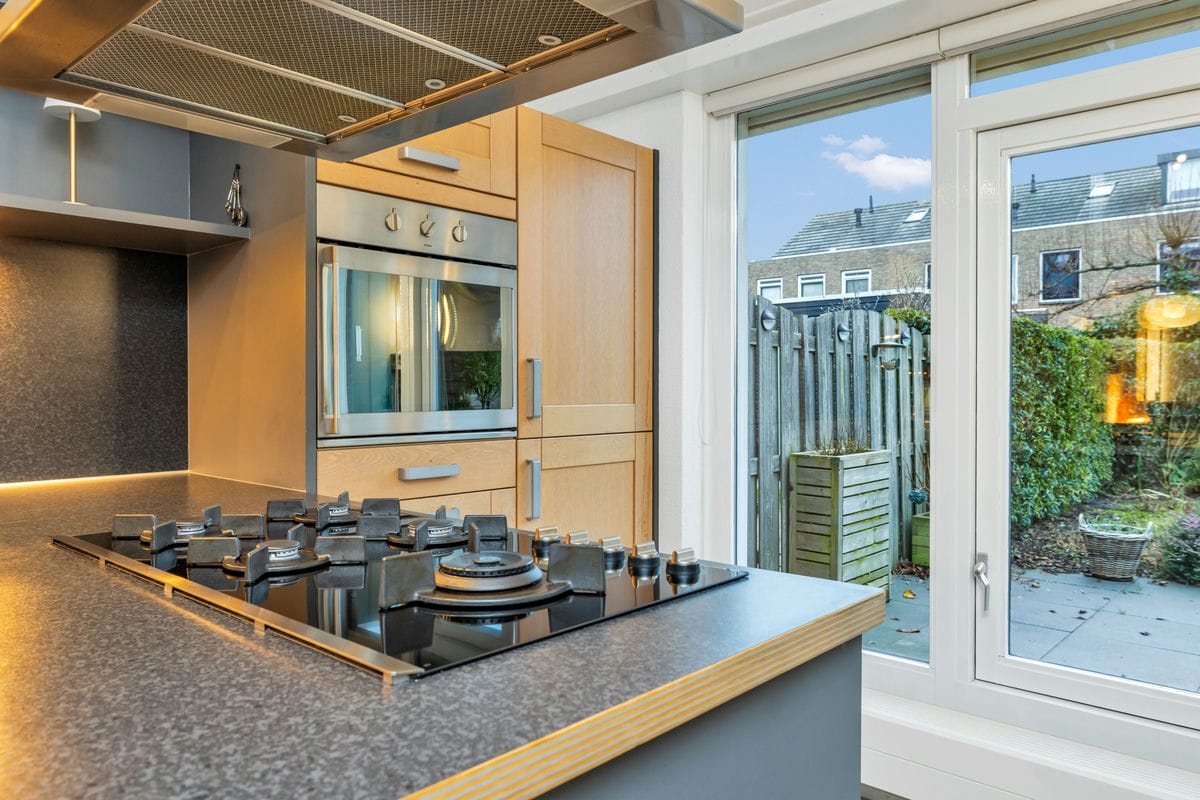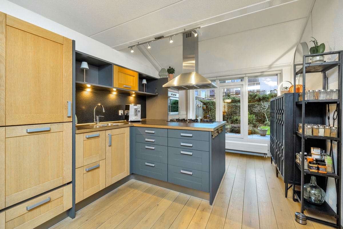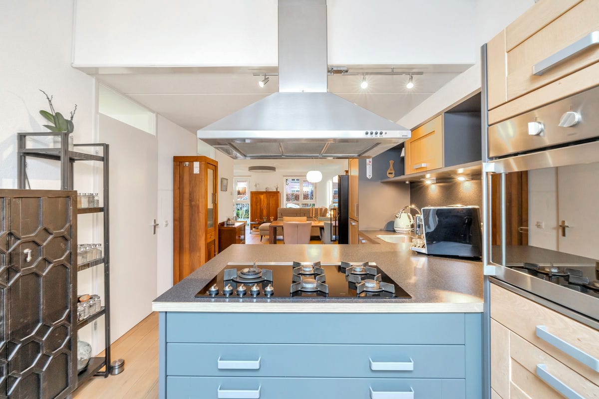 De keuken is van alle gemakken voorzien en uitgerust met een 5-pits gasfornuis, een close-in boiler, een wokbrander, een afzuigkap, een oven, een koel-vriescombinatie en een vaatwasser. Aangrenzend aan de keuken bevindt zich een praktische bijkeuken met een tegelvloer en een opstelling voor de wasmachine. Indien gewenst, kunt u de muur tussen de keuken en bijkeuken verwijderen, waardoor u de gehele achterzijde van de benedenverdieping als woonkeuken kunt inrichten.
