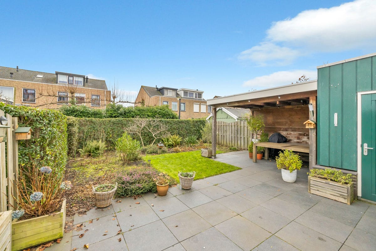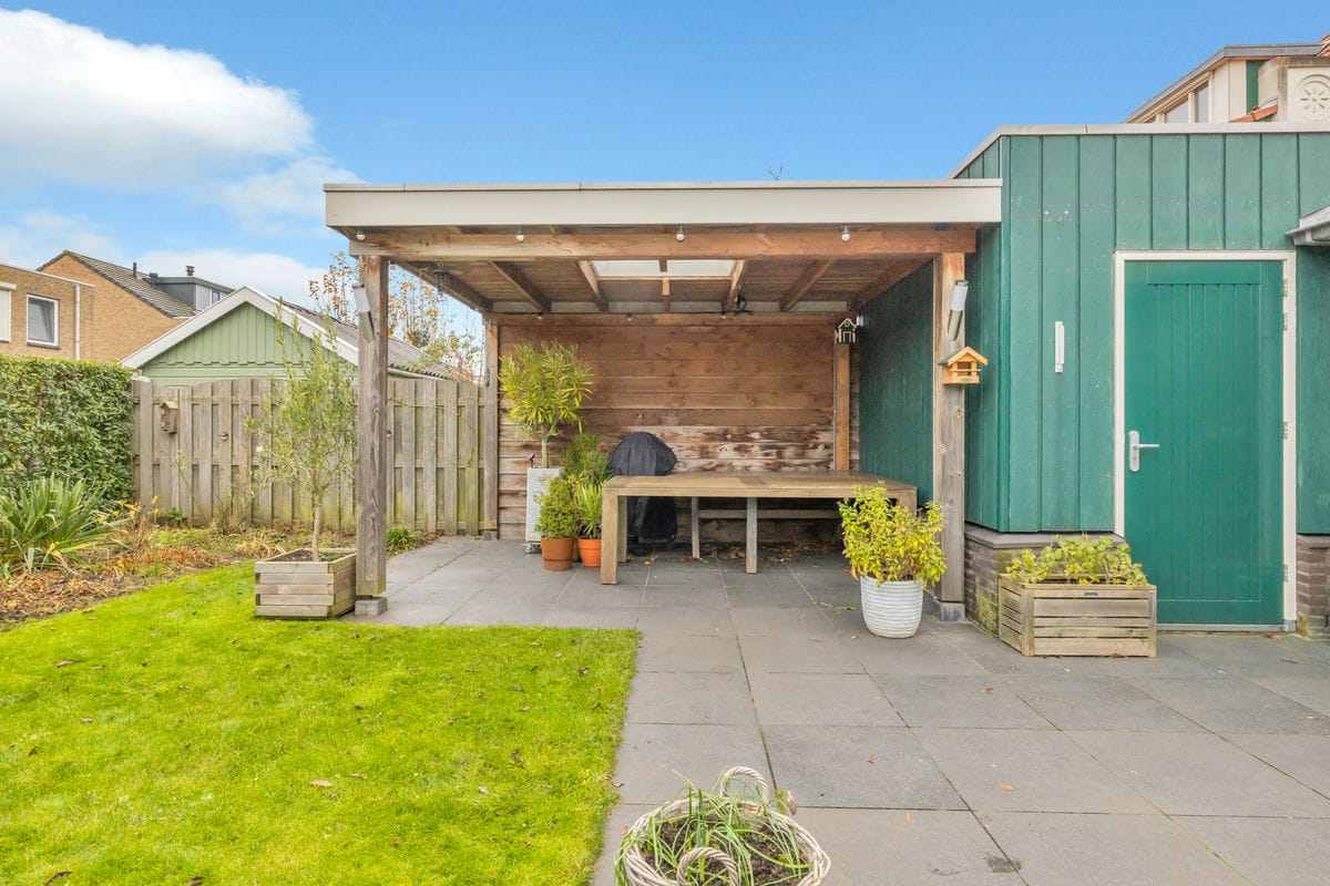De achtertuin is een ware oase. Met een breedte van 9 meter en een diepte van maar liefst 11 meter op het diepste punt, biedt de tuin volop ruimte. Naast de fraaie beplanting en bestrating geniet u van het extra comfort van de overkapping, die in 2016 is geplaatst en sfeervol is verlicht.