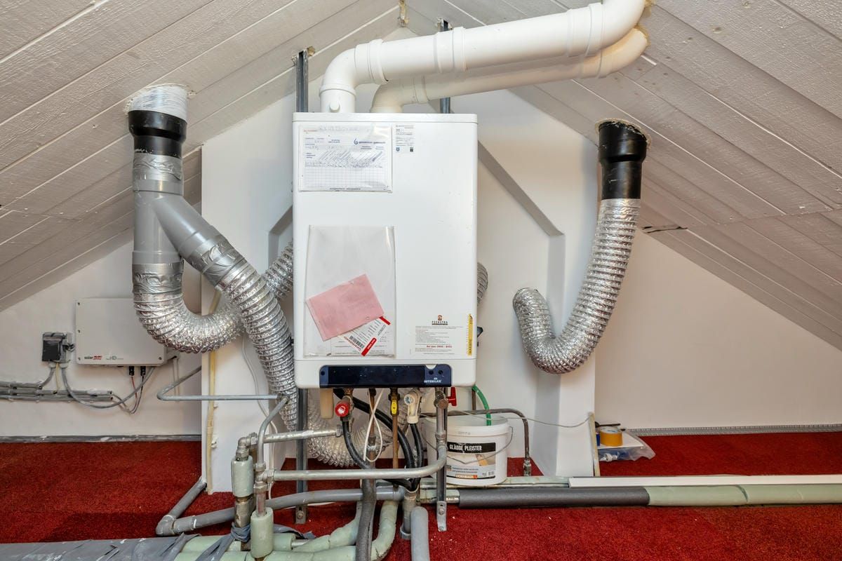 Tweede verdieping: Bereikbaar via vlizotrap. Bergvliering met CV-installatie (Intergas, eigendom, 2011) en omvormer voor de zonnepanelen. Mogelijkheid tot het plaatsen van een dakopbouw, waardoor een extra slaapkamer gerealiseerd kan worden.