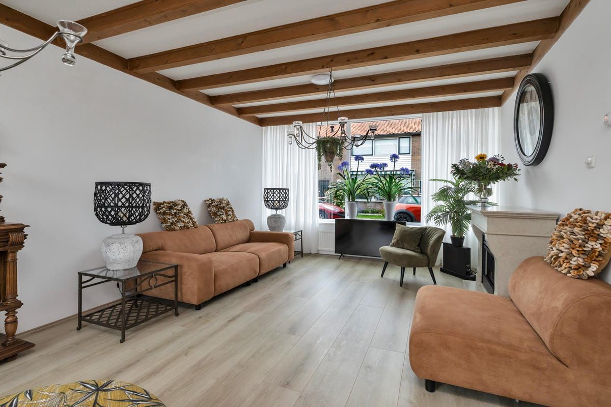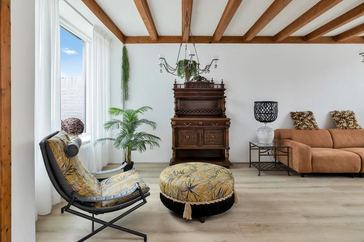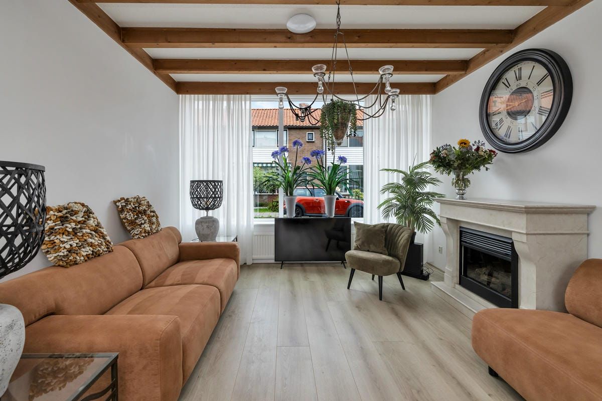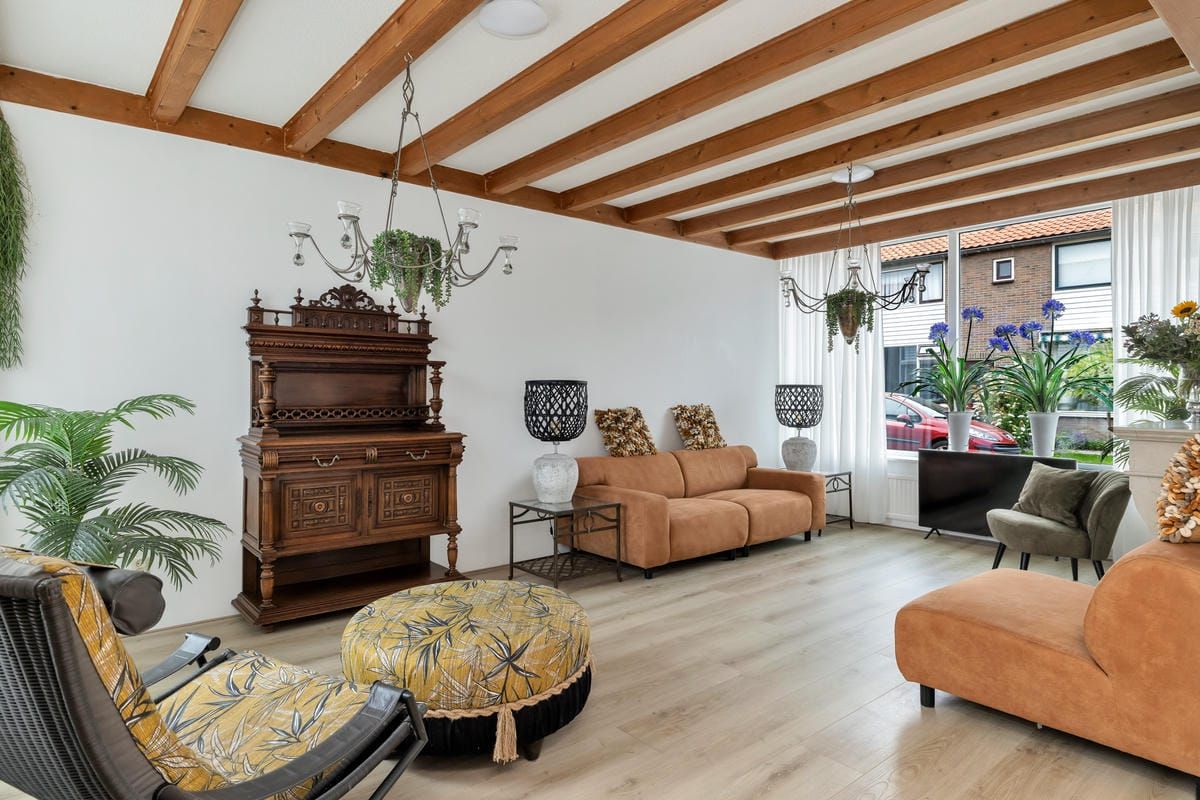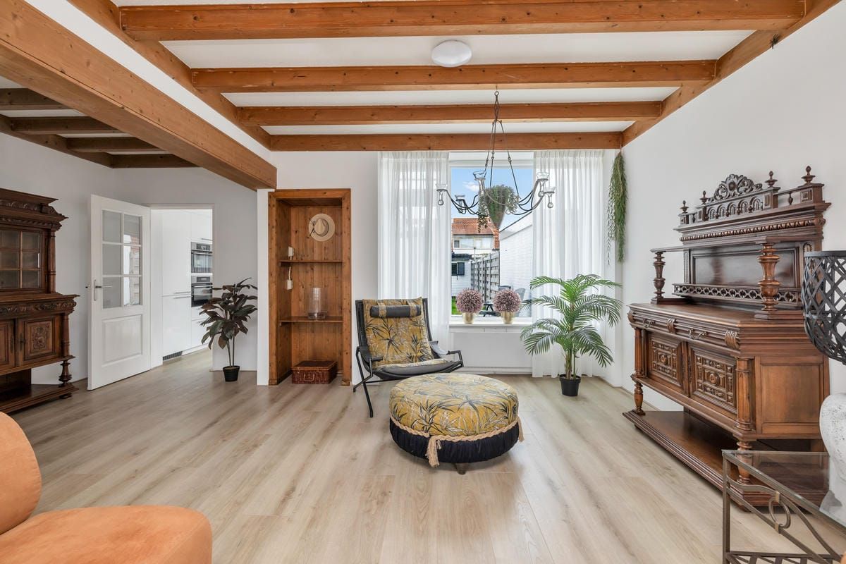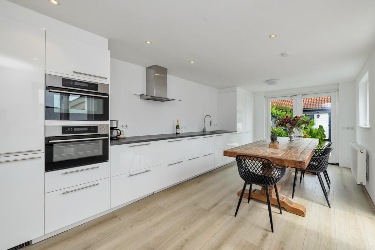 De woonkamer is sfeervol met een balkenplafond en elektrische haard. Twee echte blikvangers die zorgen voor warmte en gezelligheid. Dankzij de royale aanbouw beschikt de woning bovendien over een moderne woonkeuken met openslaande deuren naar de tuin. Verder zijn alle wanden strak gestuukt, is het schilderwerk recent uitgevoerd (achterzijde 2023, voorzijde 2024) en zorgen maar liefst 18 zonnepanelen én het energielabel A voor duurzame en energiezuinige woonlasten.