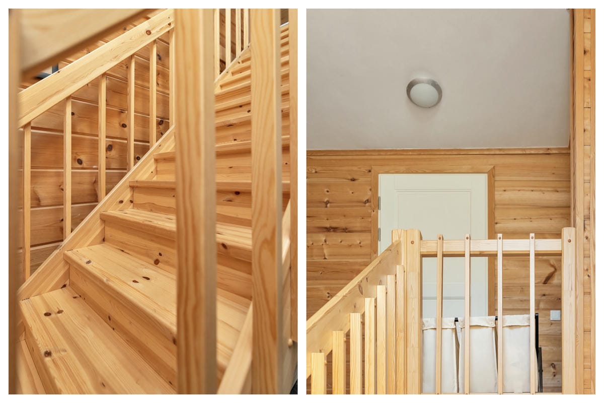 Eerste verdieping: overloop met vide, drie volwaardige slaapkamers, luxe badkamer met dubbele wastafel, ligbad, wandcloset, inloopdouche, handdoekradiator en ramen, technische ruimte met warmtepomp, WTW-systeem en infraroodsauna