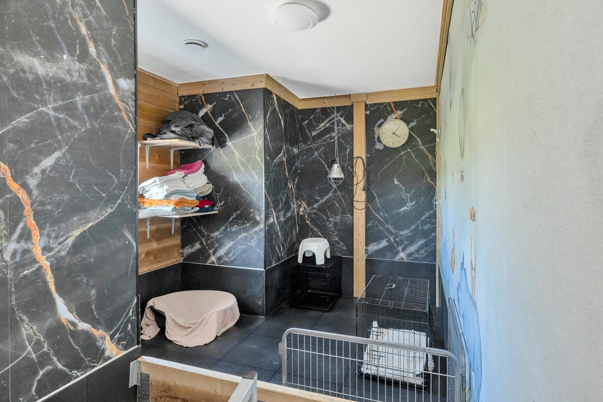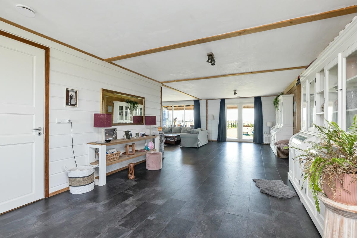 Het woonhuis telt twee volwaardige woonlagen met een doordachte indeling plus een vliering. Dankzij hoogwaardige materialen, ruime kamers en grote raampartijen is het binnen heerlijk licht en comfortabel. De begane grond is voorzien van vloerverwarming en koeling. Op de begane grond zijn thans twee ruimtes ingericht voor hondenverzorging tijdens de nestperiode, elk met een eigen toegang. Deze zijn eenvoudig om te bouwen tot twee extra kamers met eventueel eigen sanitair.