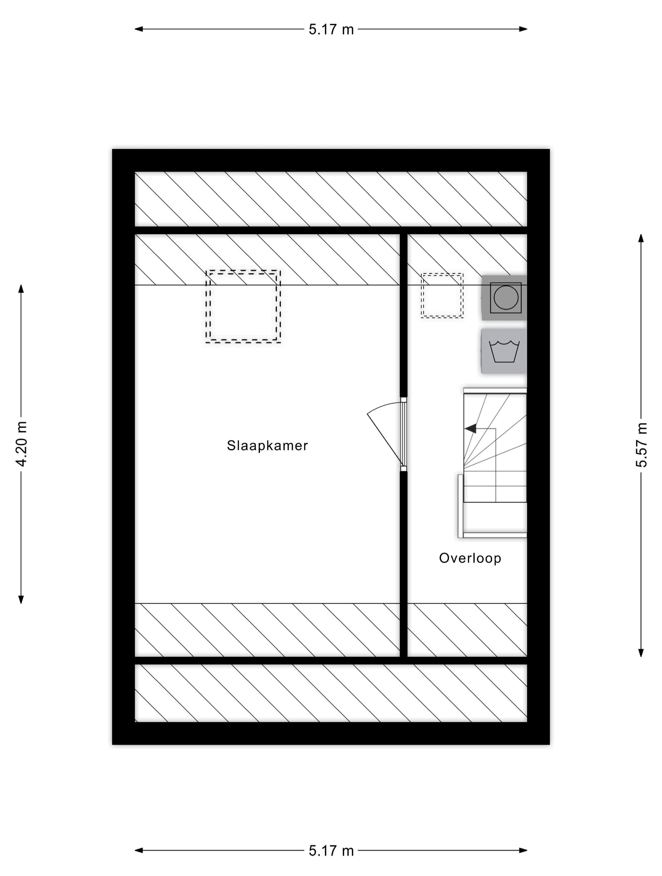 Tweede verdieping: voorzolder met wasruimte en cv opstelling, vierde slaapkamer, bergvliering.