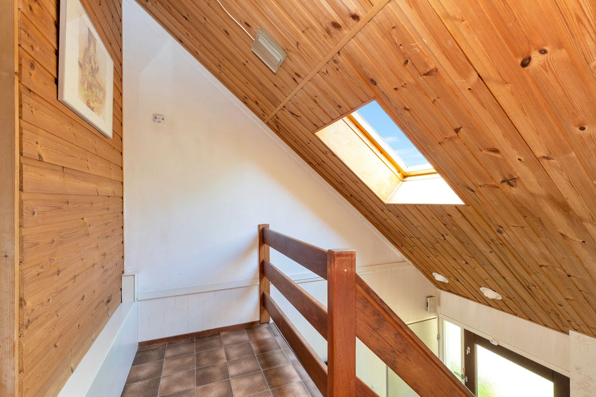 Eerste verdieping: Overloop met vide, was-/cv-ruimte, 1 grote slaapkamer met dakkapel, 1 slaapkamer met dakraam.
