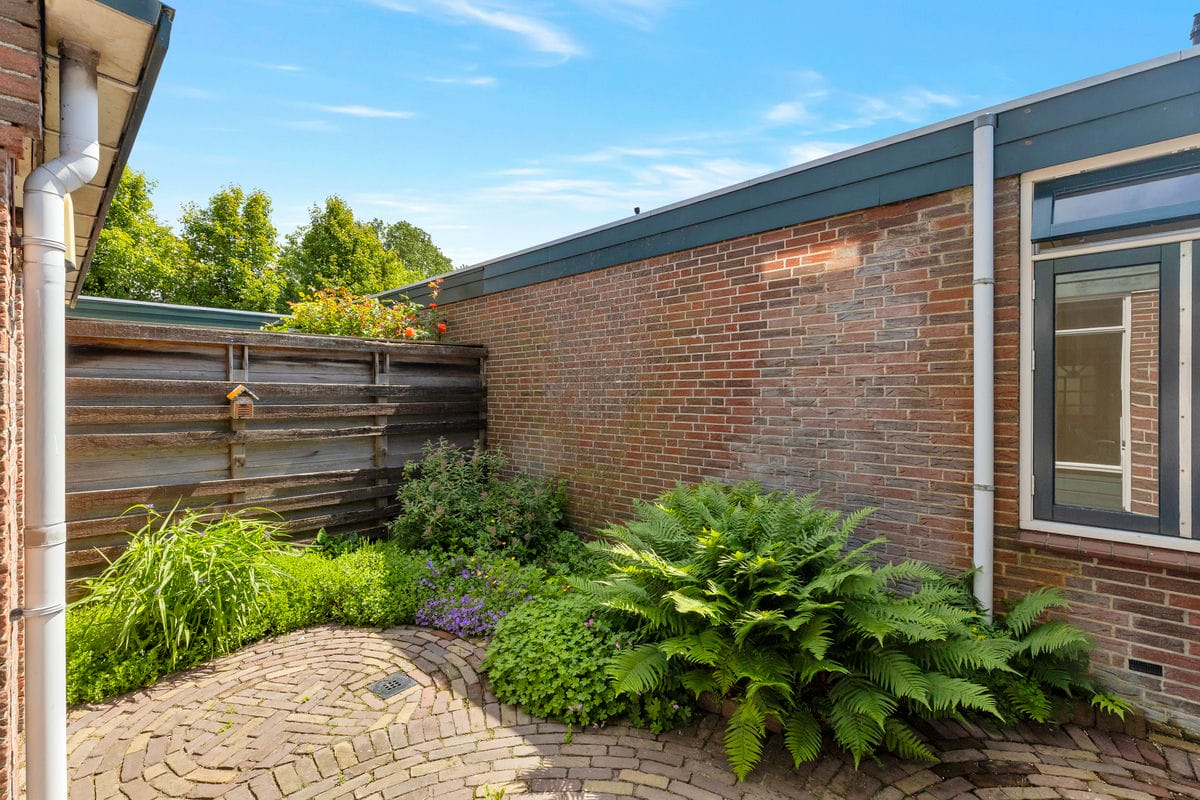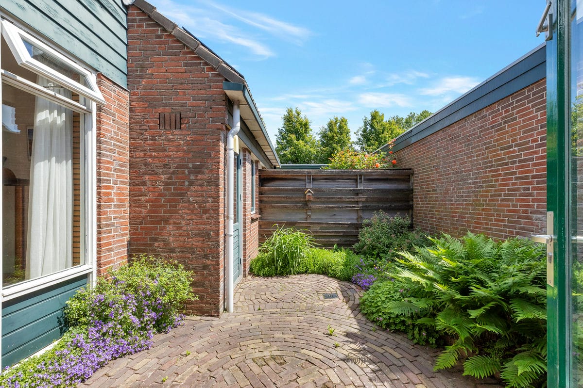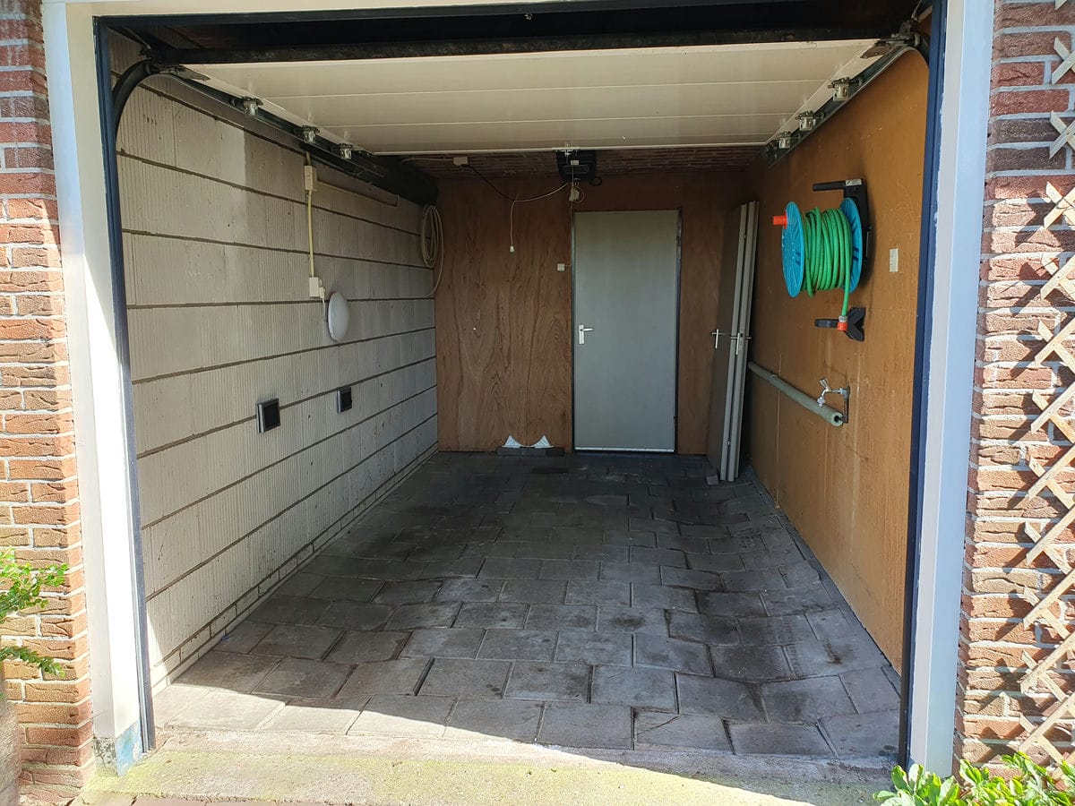 Begane grond: Voortuin, entree, hal met daarin toilet, meterkast en trap naar de 1e verdieping, woonkamer, L-vormige keuken met toegang naar de patiotuin, hal, badkamer, slaapkamer. Via de patiotuin of voorzijde van de woning toegang tot de garage/berging.